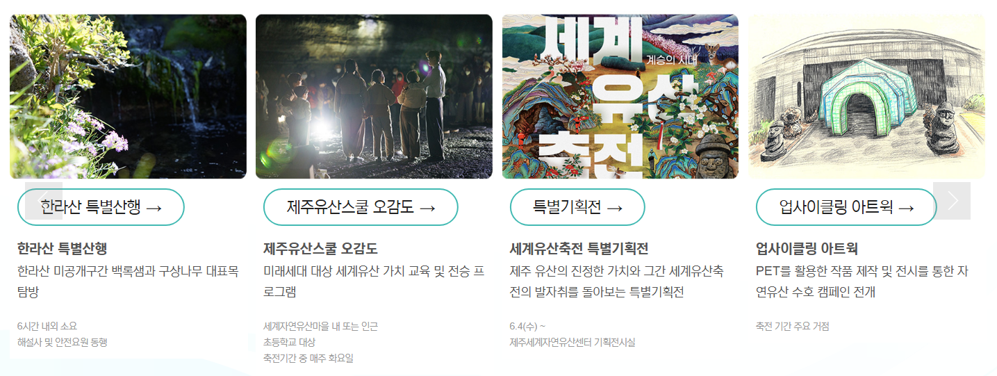 | 워킹투어 | 한라산/거문오름 | 전문가와 함께하는 탐방객 투어 프로그램 |